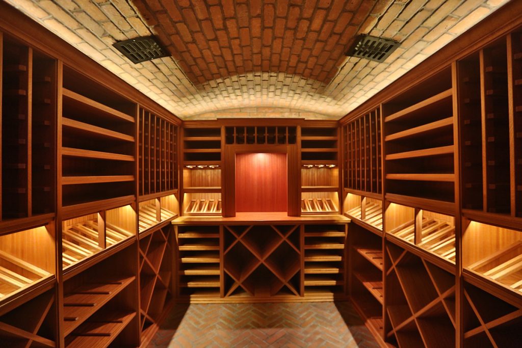Elegant dining room, classic wood study with fireplace, walk-in wine cellar enhanced with shelf lighting, and a private guest suite complete the main level.
