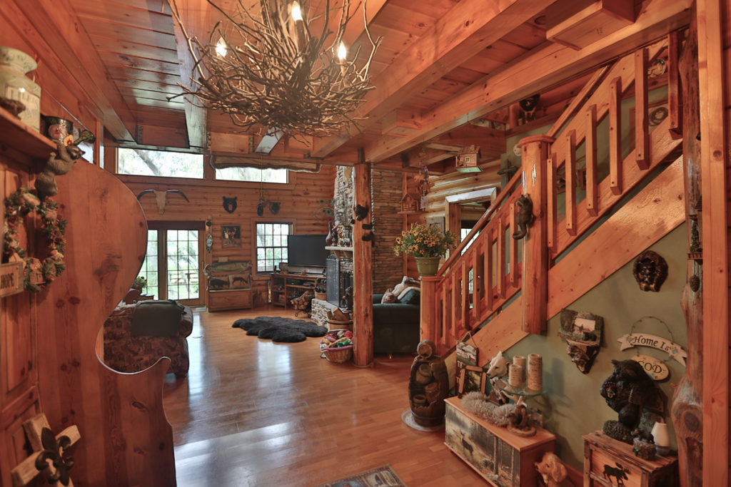 Oversized porches plus a screen enclosed front porch is perfect for afternoon gatherings enjoying the sunsets in the evenings. Paved sidewalk leads you down the path to the lit dock and lake. Immaculate landscaping, property totally fenced with butterfly gardens. Truly unsurpassed quality in this rustic charmer!