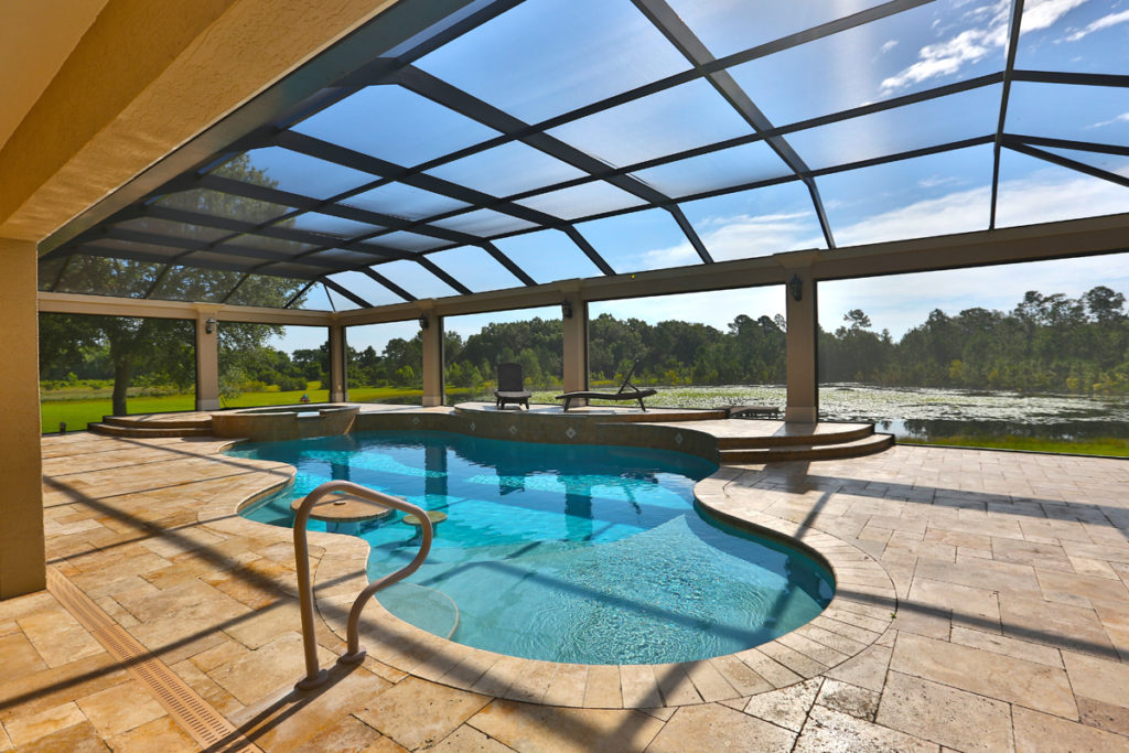 3 Bedroom/ 3 bath home offers an open floor plan with stack able glass sliding doors that lead to the ultimate screened enclosed pool / spa area with magnificent lighting overlooking a private lake.