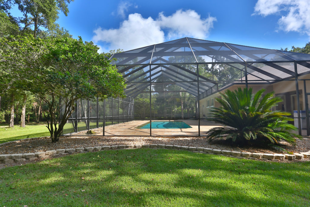 Well maintained home with mature landscaping, sits on 3 private acres with lovely screened in heated pool, surrounded by Travertine. Inside the bright and airy home you will find a great room with fireplace, kitchen with granite counters, master bedroom with large walk-in closet plus office/5th bedroom. In the Master bath you are welcomed by the garden tub, separate showers, and double vanities.